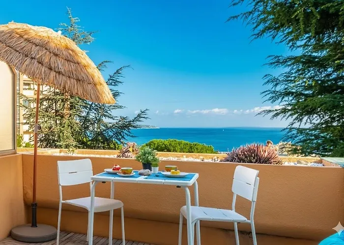 Pleine Vue Mer Au Calme - Parking, Piscine, Tennis apartment includes self-catering facilities, such as a full kitchen with an electric kettle, a fridge, and kitchenware. Nice Cote d'Azur airport is at a 15-minute driving distance, and Clair Horizon bus stop is within a few blocks of Pleine Vue Mer Au Calme - Parking, Piscine, Tennis apartment.